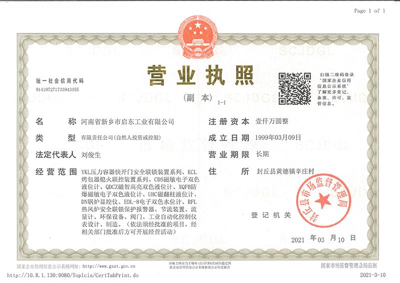 河南省新鄉市啟東工業有限公司始建于1987年,是專注研發、生產自動化儀器儀表(主要與壓力容器、鍋爐等容器配套使用)的廠家。主要產品有液位計(磁敏雙色型、磁翻柱型等)系列、烤包器熄火聯控裝置系列、壓力容器快開門安全聯鎖保護裝置系列、鍋爐報警器系列。二十多年來,公司產品暢銷國內并遠銷俄羅斯、蒙古與東南亞,深得廣大用戶的信賴和好評。我們多年來致力于自動化儀器儀表的研制生產,公司現具有完善的生產、試驗、檢測手段和設備。科技創新、誠信服務,是我們不變的經營理念,我們將以強有力的技術支持及售后竭誠為客戶提供良好的服務。  2012年我公司成功研發了KCL系列烤包器熄火聯控裝置,并于2013年2月2日榮獲中華人民共和國國家知識產權局辦法的《實用新型**證書》<**號:2021202257735>該產品廣泛應用于唐鋼等大型鋼鐵企業,為烤包器安全作業提供了有力的保障。  2002年我公司成功研發磁敏電子雙色液位計獨特的高亮度LED紅綠雙色顯示,獲得了專家的首肯和用戶的一致好評。在此基礎上我公司研發人員十年磨一劍,致力于XQFB-1防爆型磁敏雙色液位計的研發,于2013年12月27日由國家防爆電器產品質量監督檢驗中心檢驗合格并頒發防爆合格證書<編號:cnex19.0883>。該產品性能得到了充分的發揮,廣泛應用于含有Ⅱ類A·B級T1-T4組可燃氣體或蒸汽與空氣混合形成的爆炸性混合物的0區、1區危險場所。連接用戶DCS或PLC系統實現遠距離集中顯示和控制,從而實現節能、數字化管理。為用戶增加了一定的經濟效益和社會效益,。2014年公司成功申請了夢潤儀表的logo,新的品牌新的形象,夢潤儀表是啟東的LOGO, 歡迎新老用戶前來洽談合作。  我們一如既往地注重科研的投入,憑借產品的不斷更新、加大科技含量,進一步拓展市場。我們相信品質成就未來,以過硬質量、優惠價格、完善的售后服務熱忱歡迎廣大客戶來我司視察指導、洽談業務;精誠合作,共創輝煌!